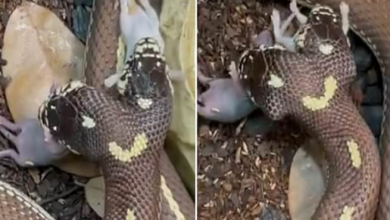 ثعبان بـ ” رأسين ” يلتهم فأرين في الوقت نفسه ! ( فيديو )