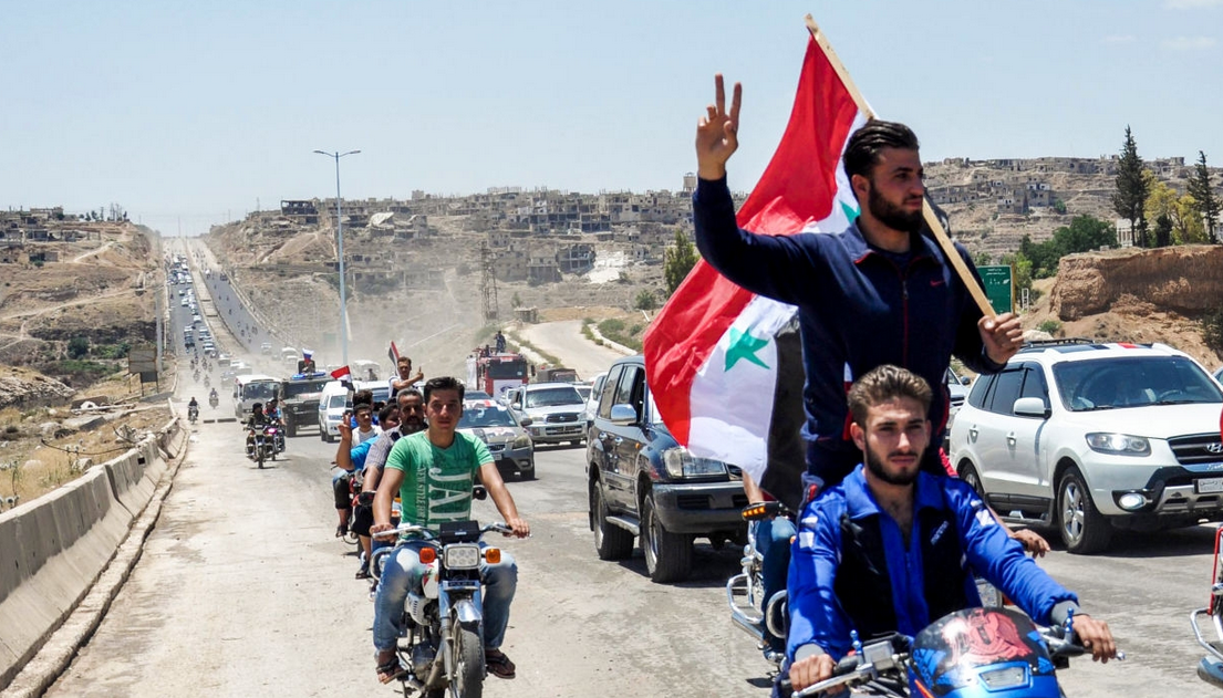 في سوريا .. زفة عريس على متن جرافة ! ( فيديو )