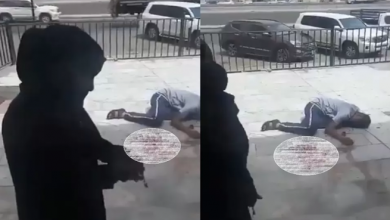في السعودية .. امرأة تطعن رجلاً في الشارع ! ( فيديو )
