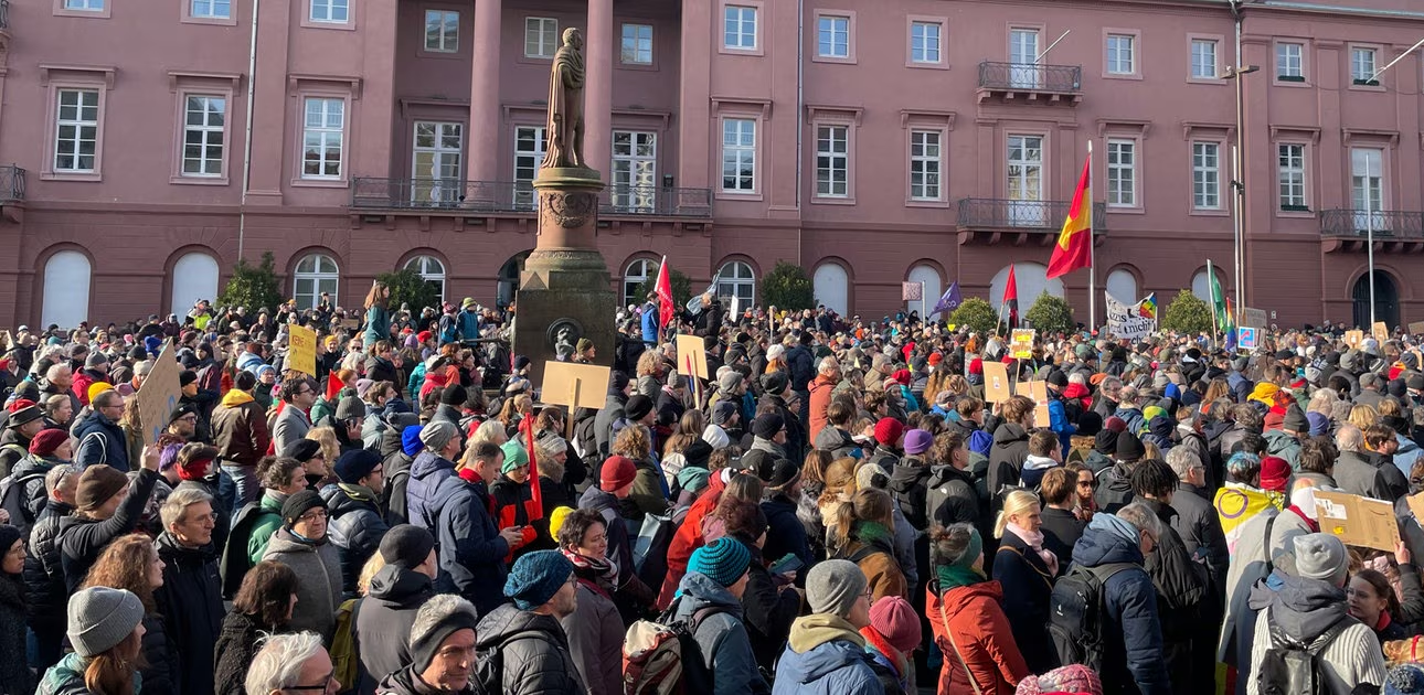 تظاهر نحو 3500 شخص في ساحة السوق بمدينة كارلسروه الألمانية، احتجاجاً على حملة انتخابية لـ حزب “البديل من أجل…