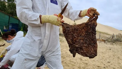 كشف تشريح جثة حوت منقاري جرفته الأمواج على ساحل لاندز (جنوب غرب فرنسا) السبت عن احتواء بطنه على 16 كيلوغراماً…