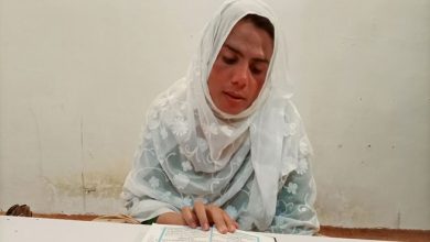 تقف راني خان كل يوم وعلى رأسها شال أبيض طويل لإعطاء دروس في القرآن، في أول مدرسة دينية في باكستان…