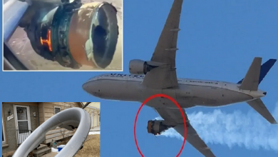 محرك طائرة أميركية يشتعل و تتساقط أجزاؤه على السكان ( فيديو )