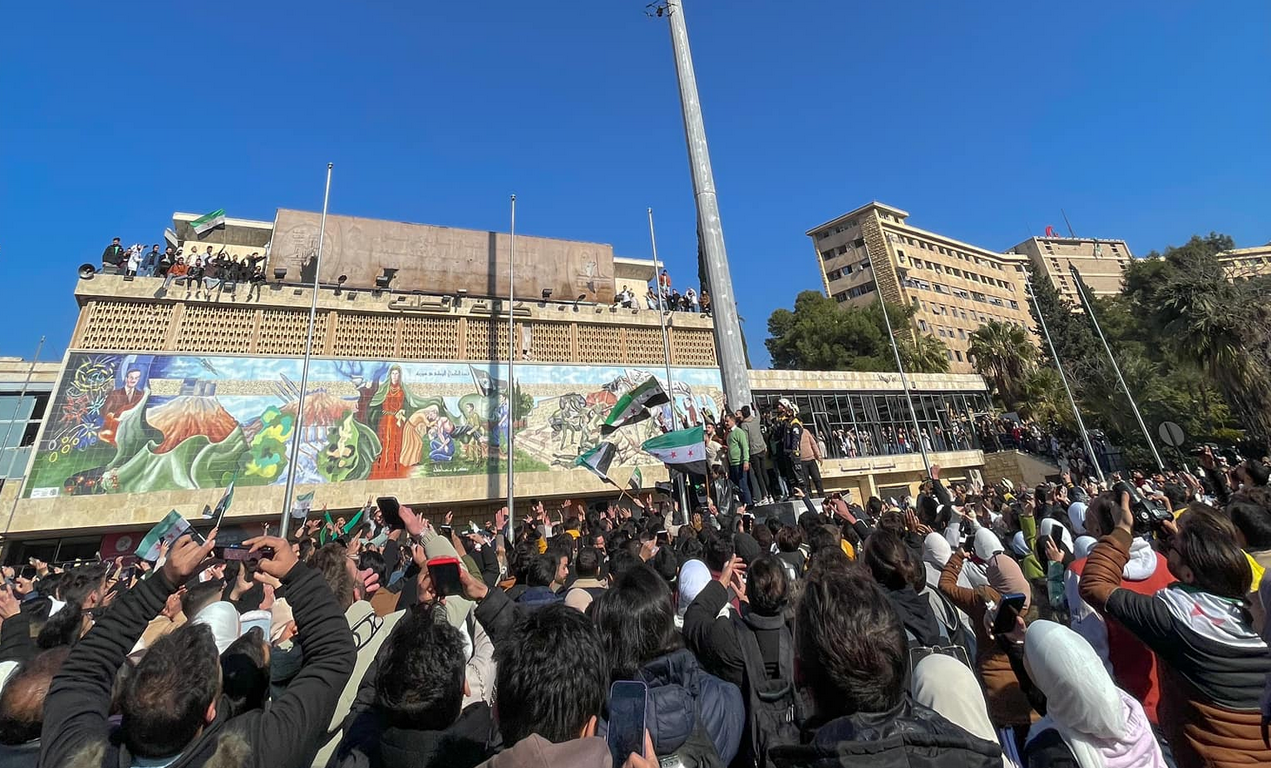 تجمع المئات من نساء ورجال في ساحة الأمويين بدمشق، الخميس، للمطالبة بنظام مدني وبمشاركة النساء في الحياة العامة والعمل…