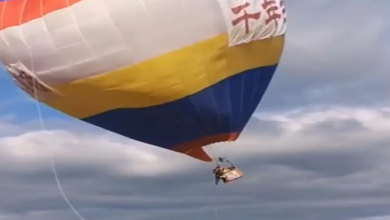 صيني يتشبث بسلة منطاد أقلع عن طريق الخطأ ( فيديو )