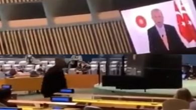 مندوب إسرائيل لدى الأمم المتحدة يغادر القاعة خلال كلمة أردوغان ( فيديو )