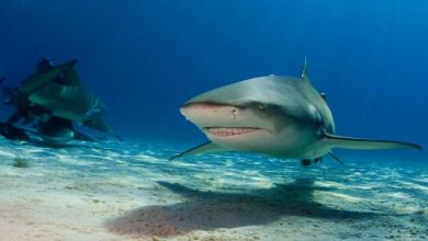 تظهر لقطات لطائرة بدون طيار سمكة قرش مخيفة تقترب من مجموعة من راكبي الأمواج في خليج بليتينبيرغ وسط البحر. وحثت…