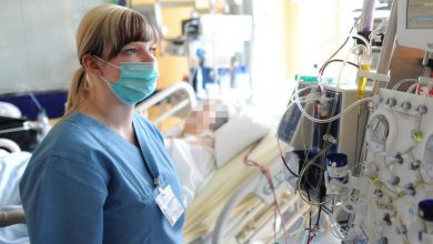 ظهرت مجموعة من الممرضات وهن يرتدين أكياس نفايات إكلينيكية في أحد مستشفيات خدمة الصحة الوطنية بالمملكة المتحدة المليئة بمرضى فيروس…