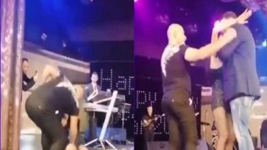 معجبة تحاول احتضان فنان لبناني .. و حبيبها يرميها أرضاً ! ( فيديو )