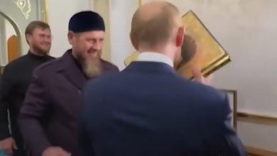 قاتل المسلمين يقبل نسخة مذهبة من القرآن خلال افتتاحه مسجداً مع قاديروف ( فيديو )
