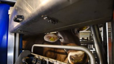 هل تأكل أم تطلب حلابتها؟ لقد احتارت البقرة في حظيرة الألماني هارتموت أوكسه. ولكن عندما أصبح جهاز الحلب الآلي شاغراً…