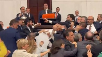 شجار بين نواب من الحكومة و المعارضة داخل البرلمان التركي ( فيديو )