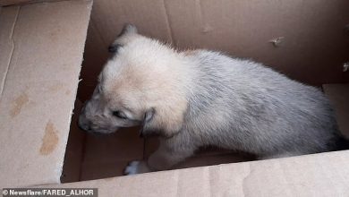 صحيفة بريطانية : بعد أن راحت والدته ضحية للقصف .. إنقاذ جرو كان بين أنقاض مقر البغدادي المدمر…