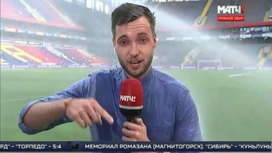 مراسل رياضي روسي يتعرض لموقف محرج على الهواء ( فيديو )