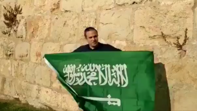 إسرائيلي يرفع علم السعودية في القدس و يوجه رسالة