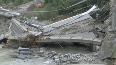 فيضانات في سوريسرا تتسبب بتدمير جسر و انقطاع للكهرباء و المياه ( فيديو )