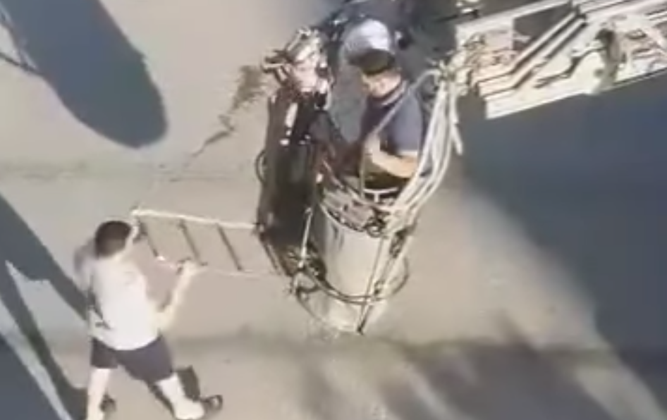 في حلب .. إخراج فتاة برافعة من شرفة منزلها لتلحق بامتحان الشهادة الإعدادية بعد ” عطل في قفل الباب ”…