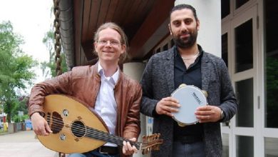 سوريون يعزفون موسيقى صوفية في مبنى بلدية ألمانية