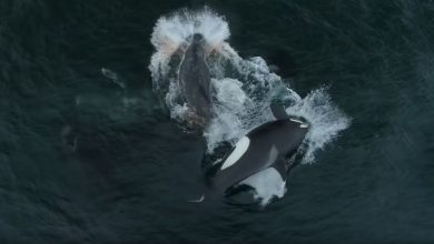 معركة فريدة من نوعها .. أنثى حوت رمادي تواجه عصابة من الحيتان و تستبسل في الدفاع عن وليدها…