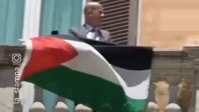 برلماني إيطالي سابق يعلّق علم فلسطين على شرفة مجلس النواب في روما ( فيديو )