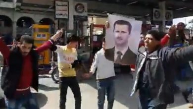 يرقصون و يغنون حاملين صور بشار الأسد .. احتفالات مستمرة للموالين في حلب بمناسبة استمرار أزمة البنزين ( فيديو )