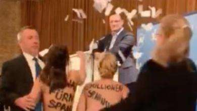 فوجئ وزير الصحة الألماني ينس شبان خلال ظهور جماهيري باثنتين من مناصرات المرأة المنتميات لحركة فيمين لذوات الصدور العارية أمامه.…