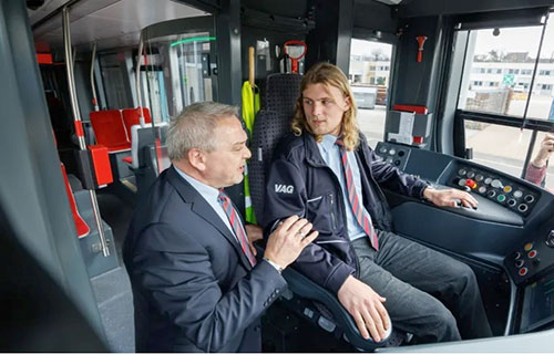 يتدرب بنديكت هانه على قيادة مركبات الترامواي في شوارع نورمبرغ، في خطوة من شأنها أن تساعد هذا الطالب الجامعي…