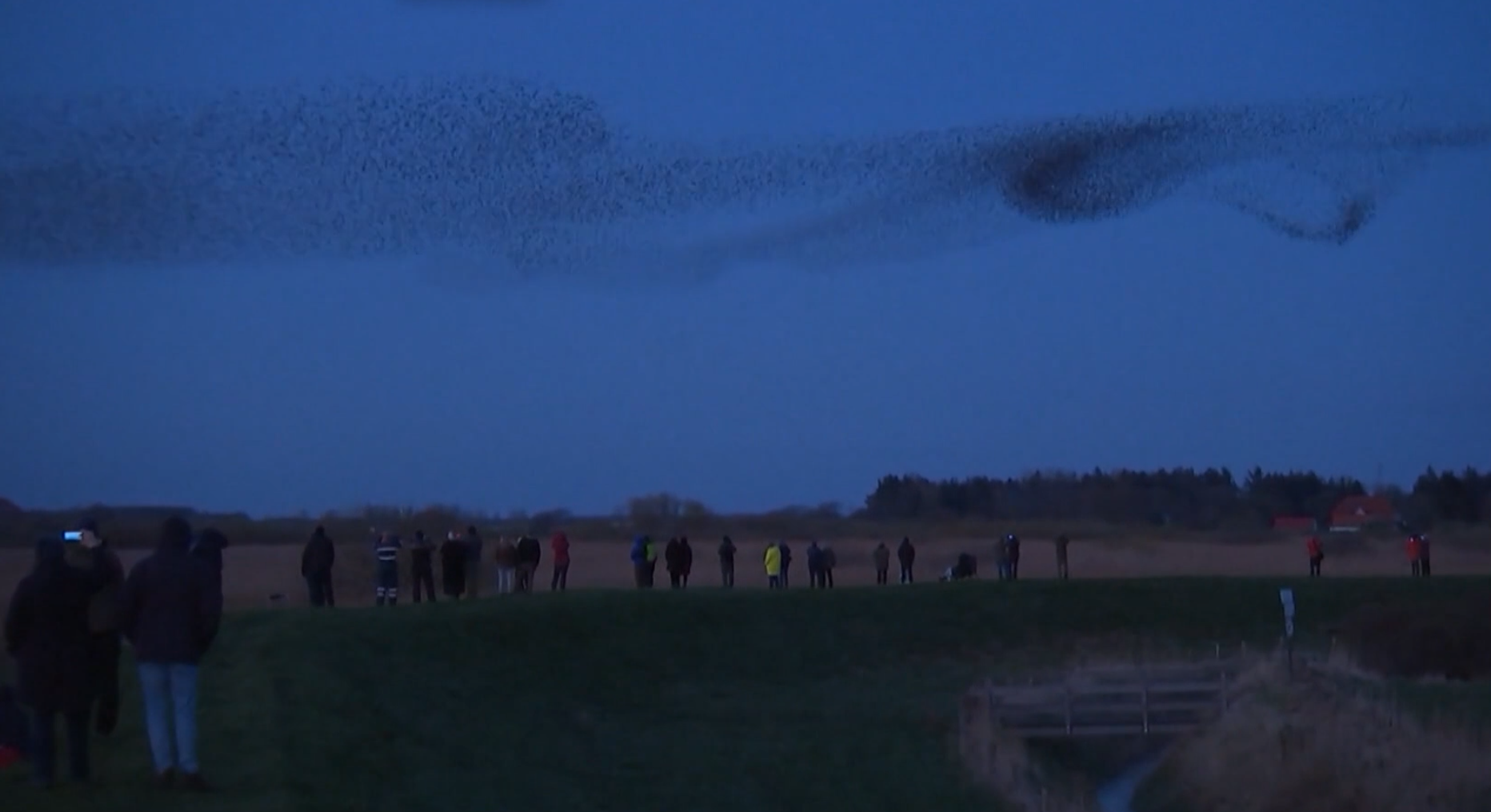 أسراب الزرزور ترسم ” الشمس السوداء ” على الحدود الدنماركية الألمانية ( فيديو )