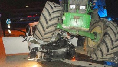 وقع حادث تصادم بين جرار وسيارة في مدينة إلفانغن بولاية بادن فورتمبيرغ الألمانية، فتحولت السيارة إلى ركام تحت الجرار. وقالت…