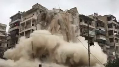 حلب : شاهد كيف تهدم سلطات النظام الأبنية المقصوفة بطريقة بدائية تفتقر لأدنى معايير السلامة ! ( فيديو…