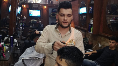 ” بالنار بدل المقص .. حلاق يقود موضة التسريحات الحلبية ” ( فيديو )