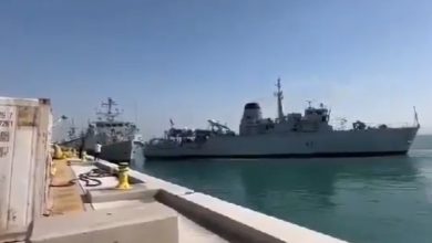 اصطدام سفينتين حربيتين بريطانيتين أثناء رسوهما بمرفأ عربي ( فيديو )