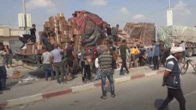 ” شوية أكفان و بسكوت خربان ” .. فلسطينيون يأخذون صناديق من شاحنة مساعدات بعد انقلابها قرب رفح…