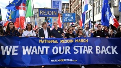 تظاهر مئات البريطانيين في وسط لندن، السبت، وهم يلوّحون بأعلام الاتحاد الأوروبي للمطالبة بعودة بريطانيا إلى التكتل. وتجمع المشاركون…