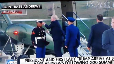 توقف الرئيس دونالد ترامب، وهو يهم بالصعود إلى طائرة الهليكوبتر Marine One التابعة للبحرية الأميركية، ويعيد لجندي من المارينز قبعته…
