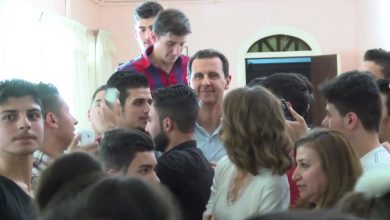 دمشق : بشار و زوجته يزوران عدداً من أبناء قتلى ميليشياته ( فيديو )