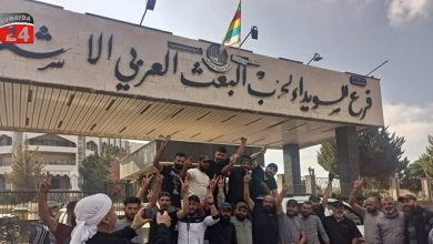 متظاهرو السويداء يغلقون حزب البعث بالحديد و النار .. ” خذ قائدك الخالد و اذهب من هنا ”…