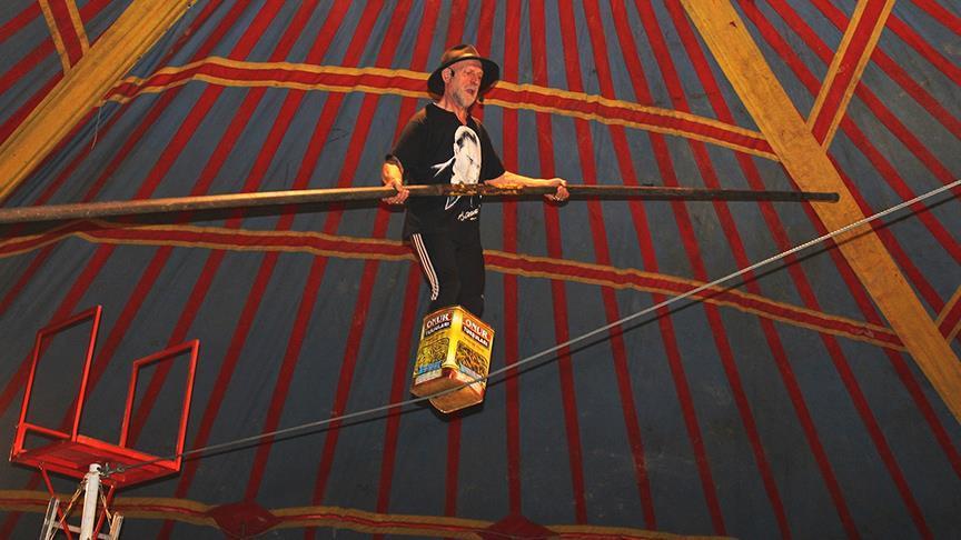 مسن تركي يواصل عمله بالسير على الحبل المشدود
