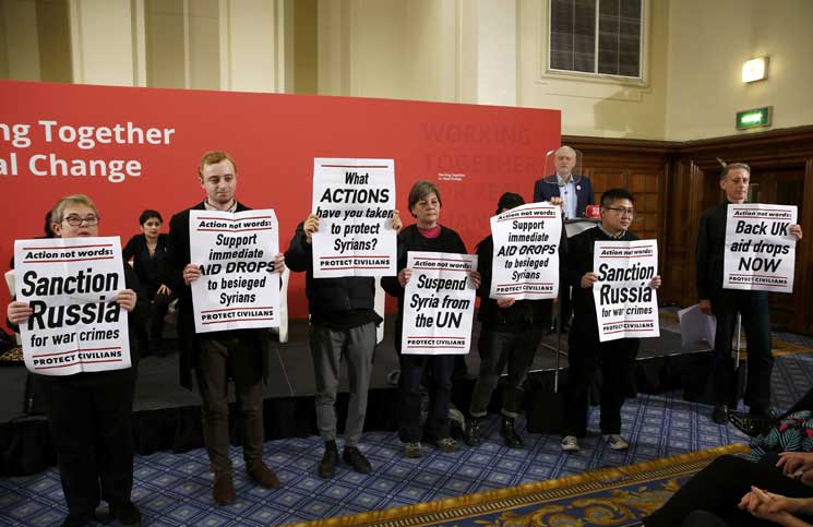 ناشطون يداهمون مؤتمرا لحزب العمال البريطاني لمطالبته بمساعدة السوريين
