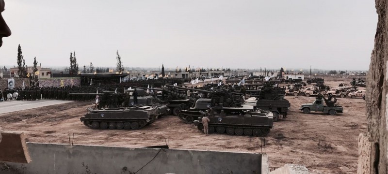 حزب الله يجري للمرة الأولى استعراضاً عسكرياً في سوريا ( فيديو )