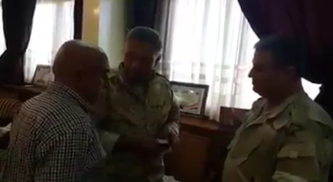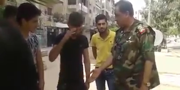 اللواء ” زيد صالح ” قائد قوات بشار الأسد المحلية في حلب يتجول في شوارع المدينة و يستجدي…
