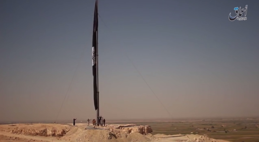 الرقة : تنظيم ” داعش ” يرفع علماً له بطول 30 متراً في ناحية السبخة ( فيديو )