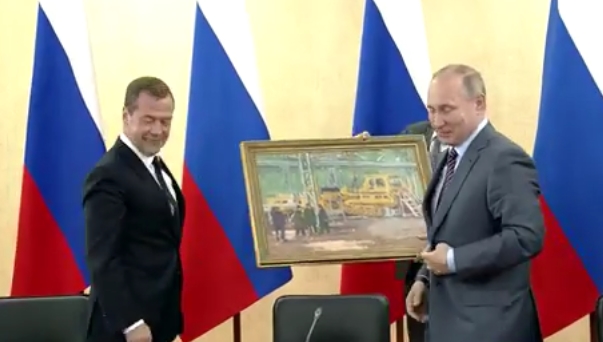 أعرب رئيس الوزراء الروسي دميتري مدفيديف عن إعجابه بهدية الرئيس الروسي فلاديمير بوتين له بمناسبة عيد ميلاده وهي لوحة فنية…
