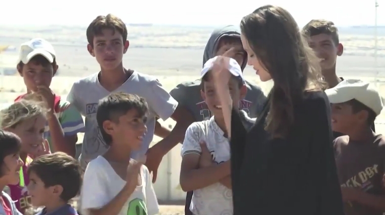 النجمة العالمية أنجلينا جولي تزور مخيمات اللاجئين السوريين في الأردن ( فيديو )