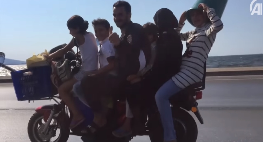 في تركيا .. 6 سوريين على دراجة نارية واحدة ! ( فيديو )