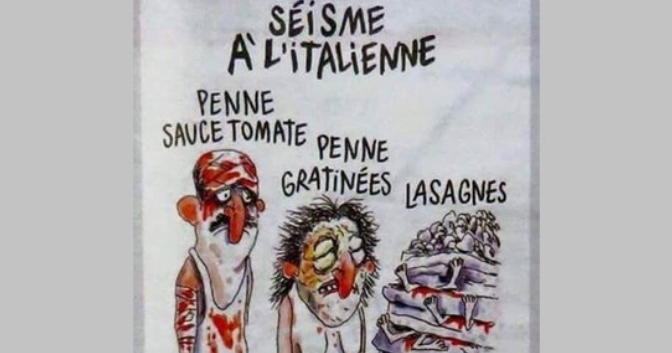 غضب و استنكار إثر نشر ” شارلي إيبدو ” رسماً كاريكاتورياً لضحايا زلزال إيطاليا