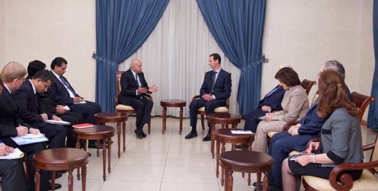 بشار الأسد و حاشيته يستقبلون ” وزير الدولة الهندي للشؤون الخارجية “