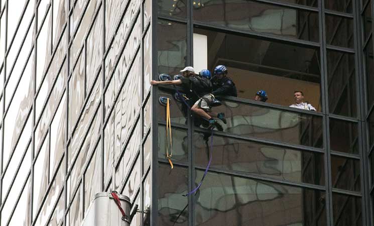 الشرطة تجذب رجلاً إلى داخل برج ترامب في نيويورك بعد أن تسلقه
