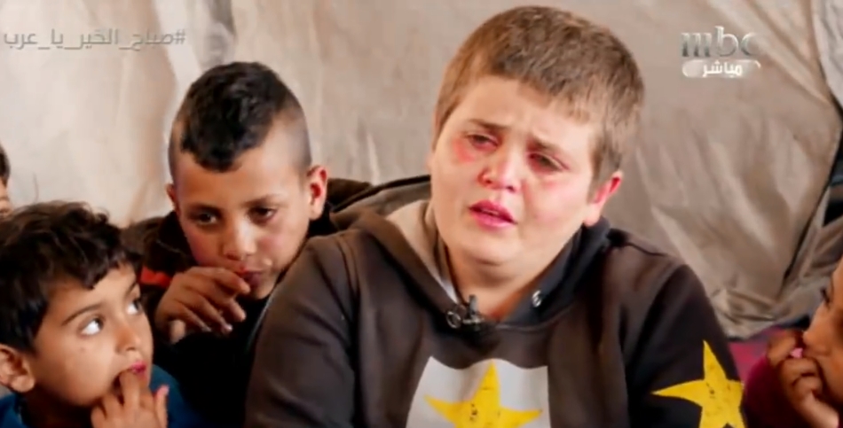 اليونان : طفل سوري لاجئ يبكي بسبب الأوضاع المأساوية التي يعيشها بعد أن هرب من براميل بشار الأسد ( فيديو…