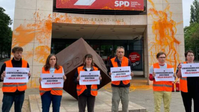 قام ثمانية من نشطاء المناخ بتلطيخ مقر حزب المستشار الألماني أولاف شولتس الاشتراكي الديمقراطي في برلين بالأصباغ، الثلاثاء. يأتي ذلك…
